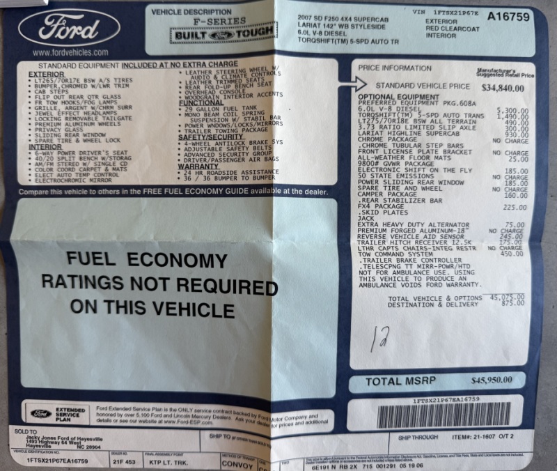 2007 Ford F250 Lariat FX4