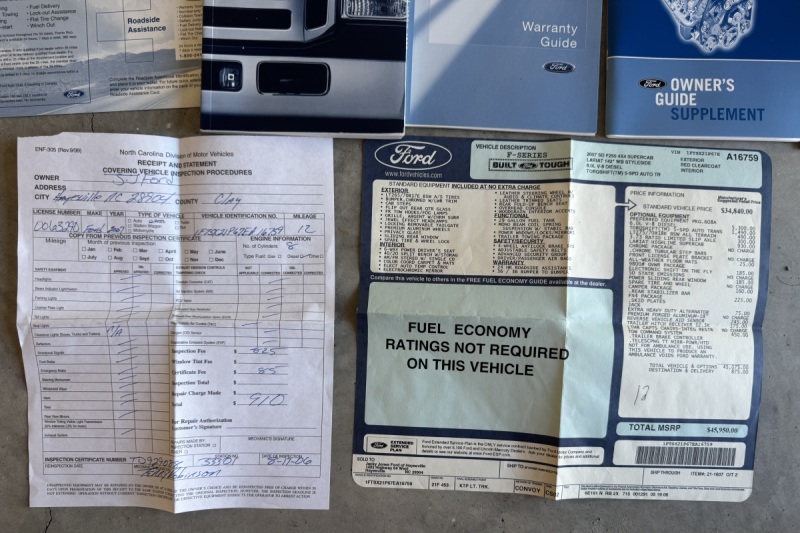Original window sticker and manuals